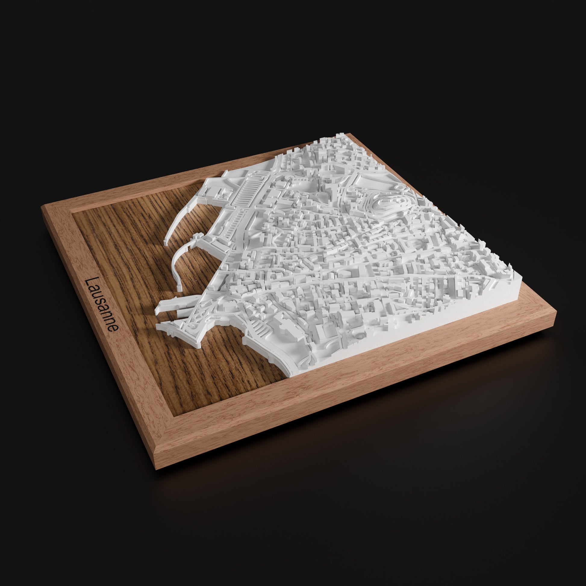 Lausanne 3D-Relief – Handgefertigte Miniaturlandschaft im Buchenrahmen